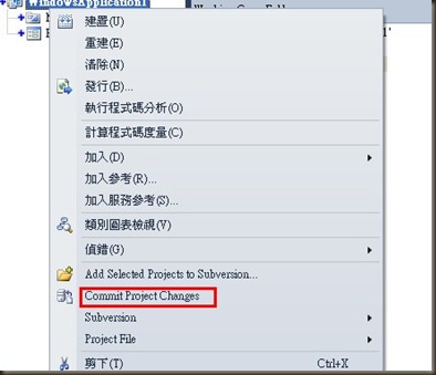 或者直接到專案處點選右鍵選取 Commit Project Changes,即可將整個專案 Commit