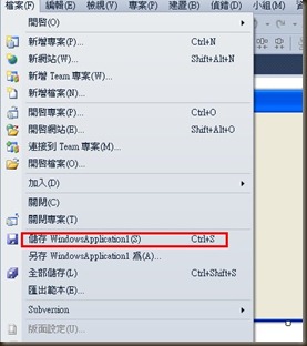 來上傳一個專案到SVN Server 測試一下,在 Visual Studio 2010 上新增一個專案,點選儲存