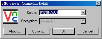 接下來可以找個 vnc client 測試一下,這邊使用的是 RealVnc,輸入 ”你的IP:5901”後點選 OK,在輸入密碼即可