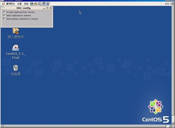 使用 root 帳號進行 vnc server 安裝(如果在安裝 CentOS 5 時,使用預設方式安裝則已包含安裝 vnc server)