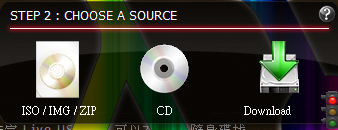 SETP2:選擇 Live USB 的來源,可以透過下載、ISO檔、CD 等方式