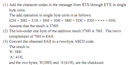 最後需要將 02(含) 到 03(含) 的資料以字元的方式加總起來,取得 low-order one byte 進行 2 的補